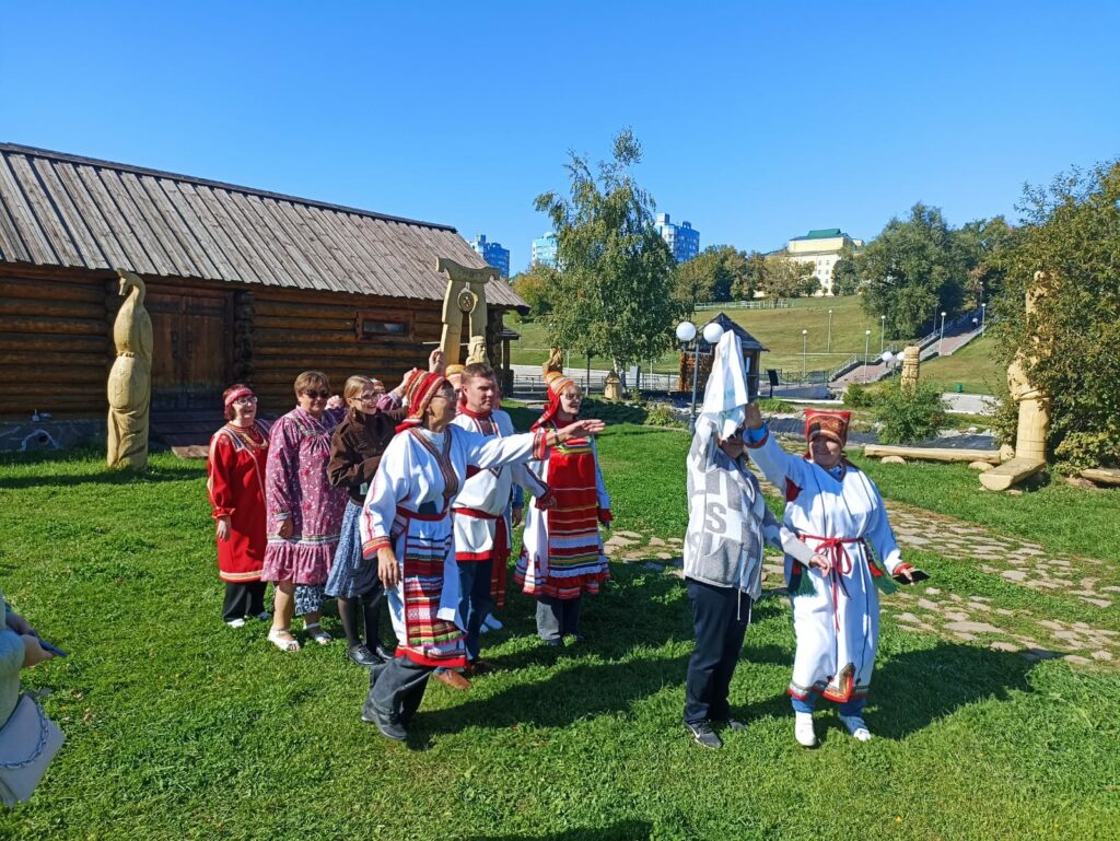 16 сентября особая группа в составе 15 участников в рамках проекта «Особый туризм для особенных людей», который реализуется при поддержке фонда президентских грантов, отправилась на экскурсию. Программа дня включала посещение двух знаковых мест: Мордовский республиканский объединённый краеведческий музей имени И. Д. Воронина и расположенный рядом этнографический комплекс «Мордовское подворье». Экскурсия по краеведческому музею имени И.Д. Воронина началась с посещения зала этнографии. Экскурсовод музея провела для нашей группы подробную экскурсию, рассказывая удивительные истории о быте мордовского народа, его обычаях и традициях. Представленные экспонаты, среди которых особое место занимают предметы традиционного народного искусства мокши и эрзи, демонстрируют преемственность культурных традиций народов Поволжья на протяжении столетий. В процессе двух часовой экскурсии перемещаясь из зала в зал музей оживал перед глазами наших экскурсантов, наполняя сердца чувством глубокого уважения и благодарности предкам, создавшим столь яркую и самобытную культуру. Участники с неподдельным интересом изучали представленные артефакты, узнавая о жизни предков, их ремеслах, верованиях и искусстве. После насыщенной музейной программы, группа отправилась на «Мордовское подворье». Наш экскурсовод превратил прогулку по «Мордовскому подворью» в увлекательное приключение, сопровождая её интересными фактами и легендами. Экскурсанты знакомились с бытом крестьянской жизни конца 19 – начала 20 веков. Здесь их вниманию были представлены уникальные артефакты повседневной жизни, изделия народных промыслов и декоративно-прикладного искусства. Но самое яркое и запоминающееся ждало впереди. Наши экскурсанты погрузились в атмосферу прошлого времени благодаря костюмированной реконструкции быта русских крестьян: участники облачились в национальные наряды — яркие сарафаны, расшитые рубахи и головные уборы, что позволило им ощутить колорит ушедших эпох. Они играли в народные забавы, танцевали хороводы и слушали песни, наполненные теплом и искренними чувствами. Особое внимание было уделено изучению народных танцев. Под руководством опытных наставников, участники осваивали движения, чувствуя ритм и дух мордовской хореографии. Каждый миг здесь словно возвращал в прошлое, когда жизнь текла медленно и размеренно, а люди ценили каждую минуту вместе. В завершении экскурсанты тепло и эмоционально благодарили организатора и команду Мордовской РО ВОИ за предоставленную возможность быть участником проекта. Этот проект стал ярким примером того, насколько важно создавать условия для полноценного участия каждого человека в культурной жизни страны, вне зависимости от физических возможностей. Ведь каждый имеет право почувствовать свою принадлежность к великой культуре и насладиться красотой её прошлого и настоящего. Таким образом, проект «Особый туризм для особенных людей» доказал, что путешествовать интересно и полезно каждому человеку, независимо от особенностей здоровья или возраста. Главное — желание открыть мир заново, испытать новые эмоции и найти друзей среди тех, кто рядом. И пусть эти чувства останутся в сердцах навсегда, вдохновляя на дальнейшие путешествия и открытия.